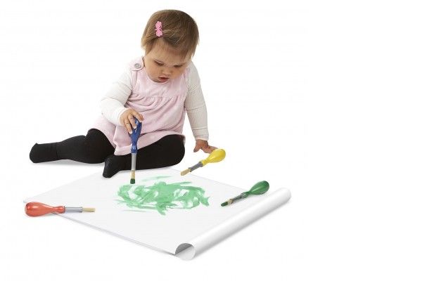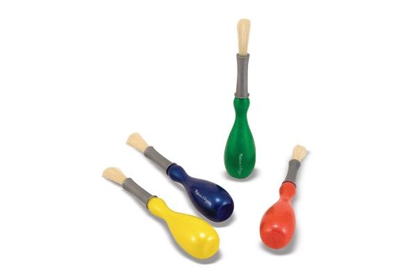 Komplet vsebuje štiri čopiče z zelo debelim ročajem, kar omogoča otrokom lažji prijem in nemoteno ustvarjanje. Čopiče lahko očistite s toplo vodo in milom.
